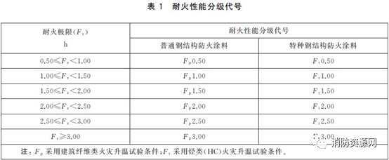 1、钢结构防火涂料的耐火极限分为:0.50 h、1.00 h、1.50h、2.00h、2.50h和3.00h。普通钢结构防火涂料用Fp表示,特种钢结构防火涂料用Ft表示。