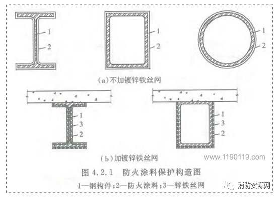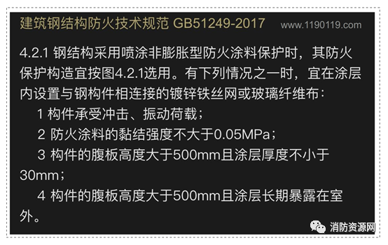 1、根据《建筑钢结构防火技术规范》4.2.1执规定,部分涂层内应设置与钢构件相连接的镀锌铁丝网或玻璃纤维布:
