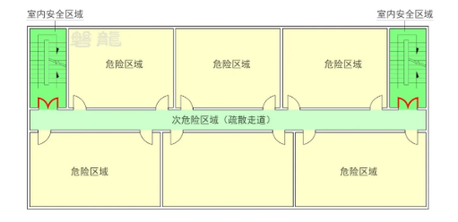 (2)次危险区域:疏散走道;