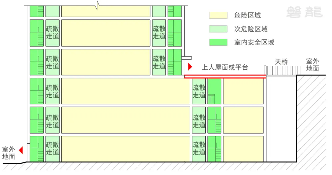 【图示6】次危险区域疏散至室外安全区域
