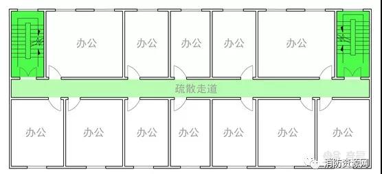 为方便理解,我们按火灾危险程度,将室内房间等视为危险区域,疏散走道视为次危险区域,前室和疏散楼梯间视为相对安全区域。疏散路径的基本确立原则如下: