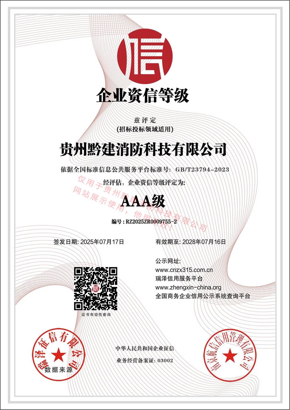 企业信用等级 AAA级