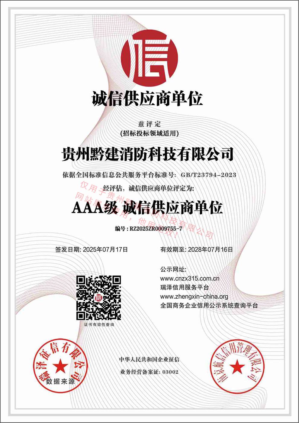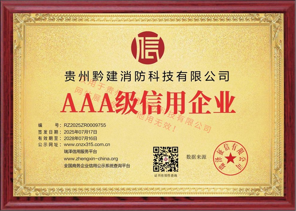 消防科技行业AAA级 诚信单位